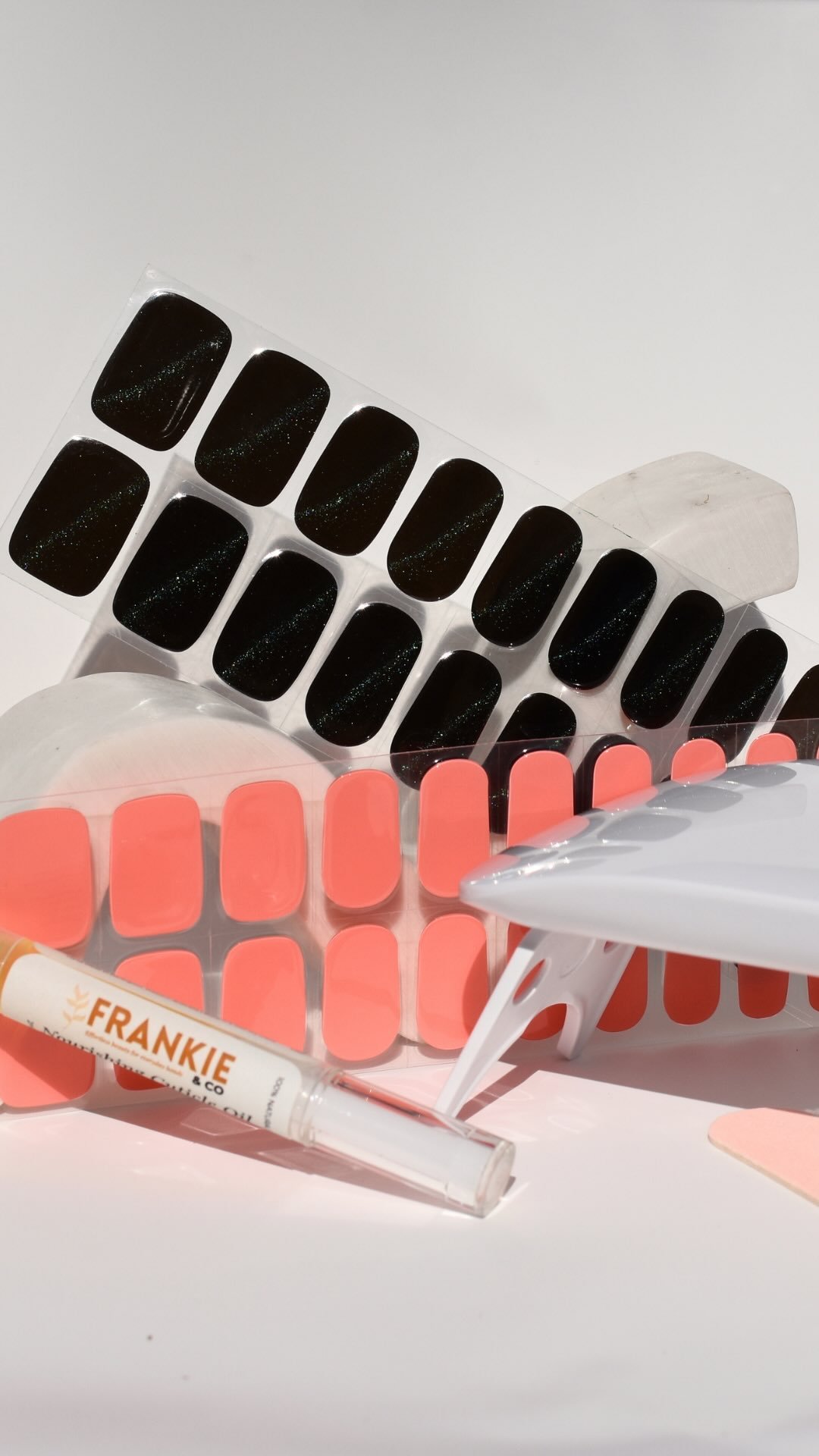 All Frankie Wraps come with 20 semi-cured gel nail stickers, a wooden cuticle stick, a nail file and alcohol pads.