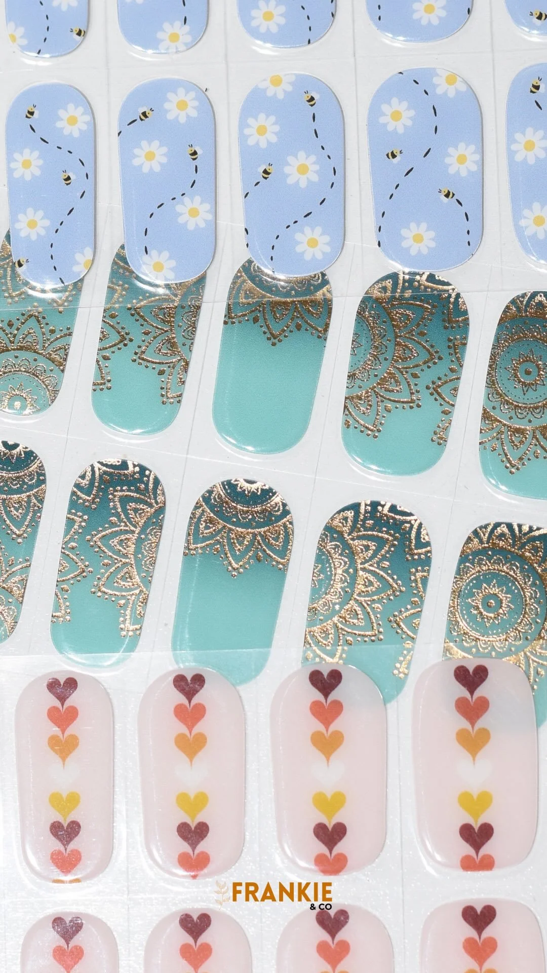 All Frankie Wraps come with 20 semi-cured gel nail stickers, a wooden cuticle stick, a nail file and alcohol pads.