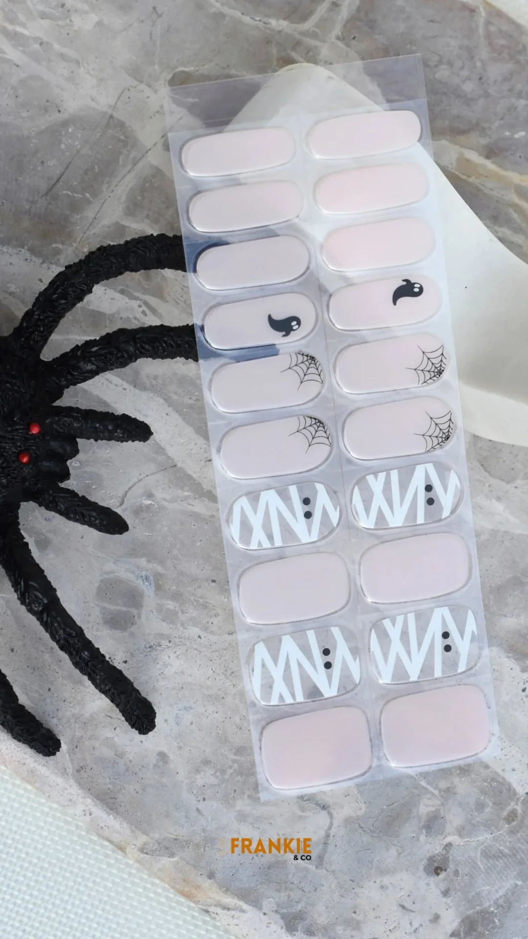 All Frankie Wraps include 20 semi-cured gel nail wraps, a wooden cuticle stick, a nail file and alcohol pads.